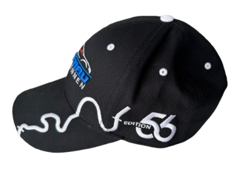 Hochwertiges 6-Panel Baseball Cap aus 100% Baumwolle mit Flaggendesign und Klettverschluss. Attraktiver 3D Stickerei auf der Front plus Sticker auf der Seite mit der Rennstrecke und 56. Limitierte Auflage.