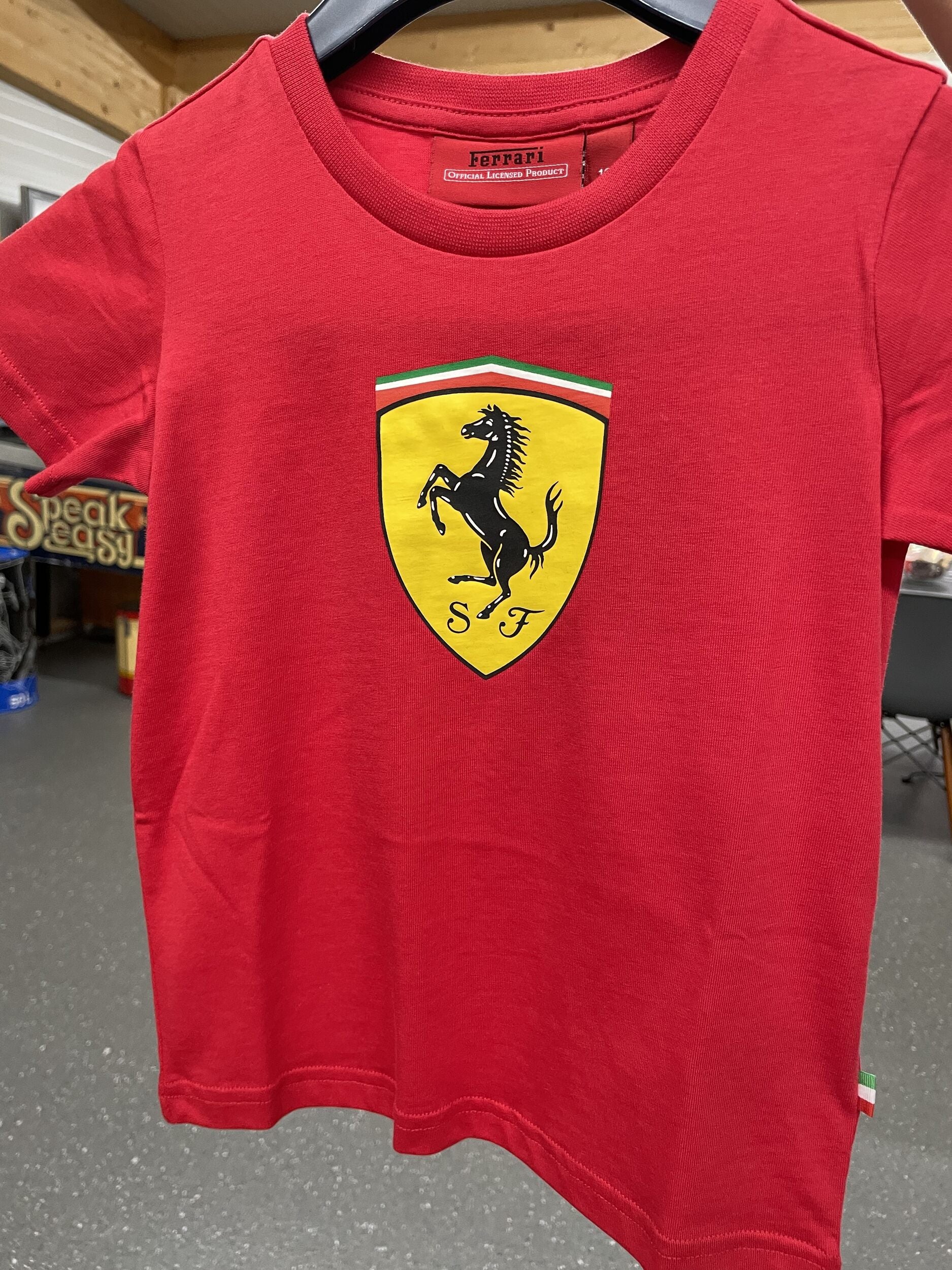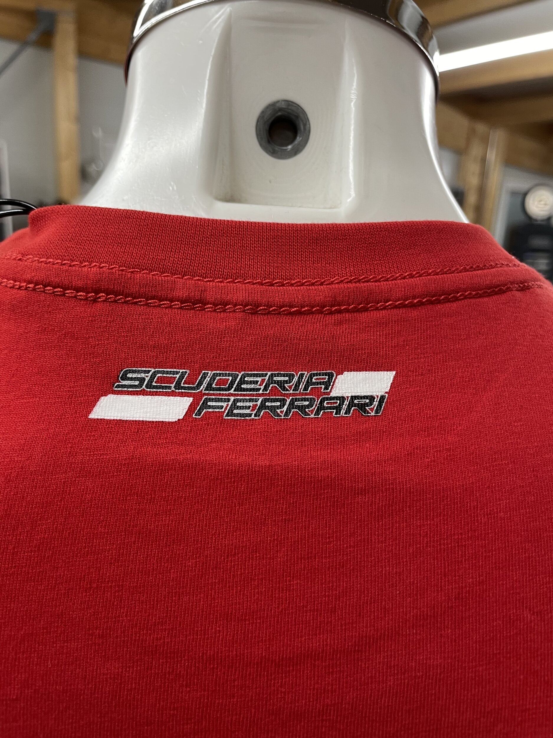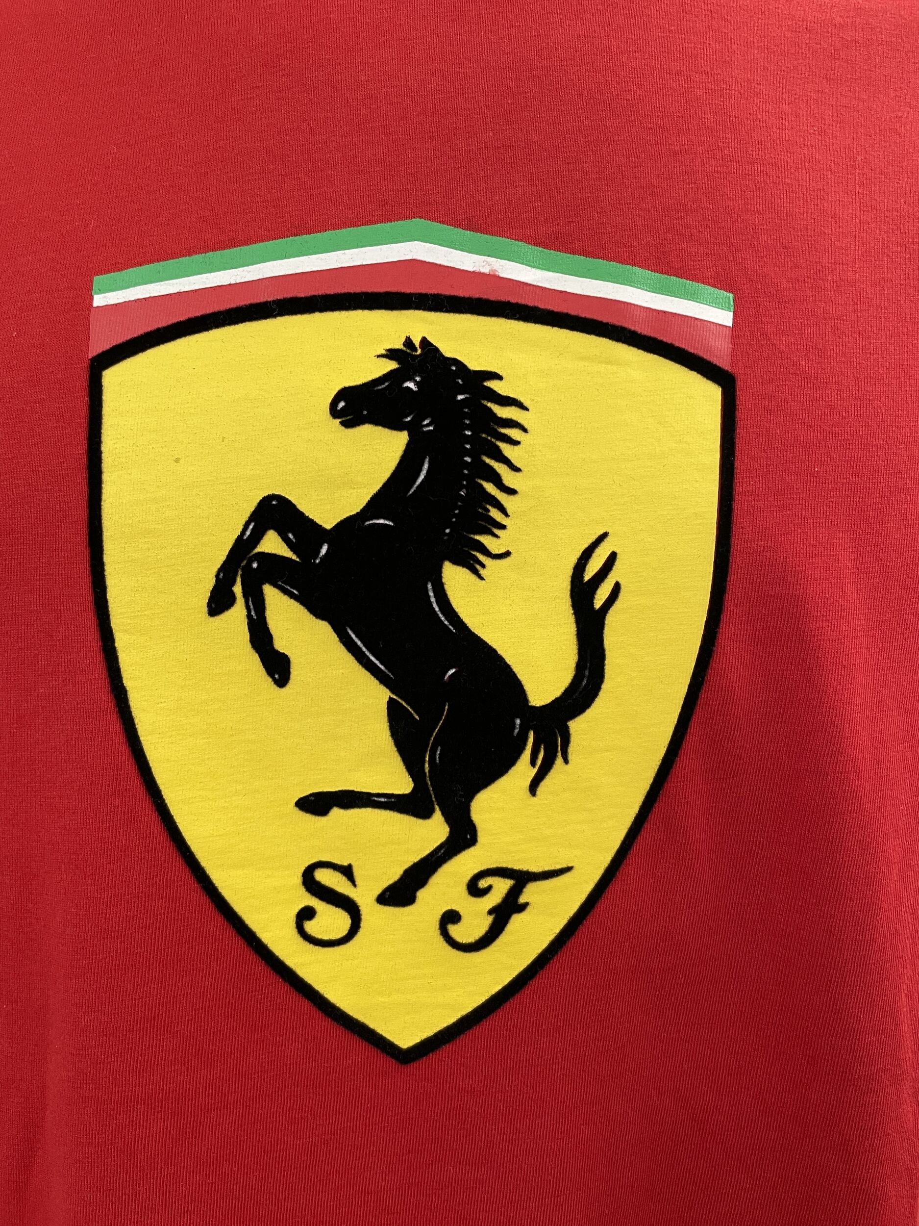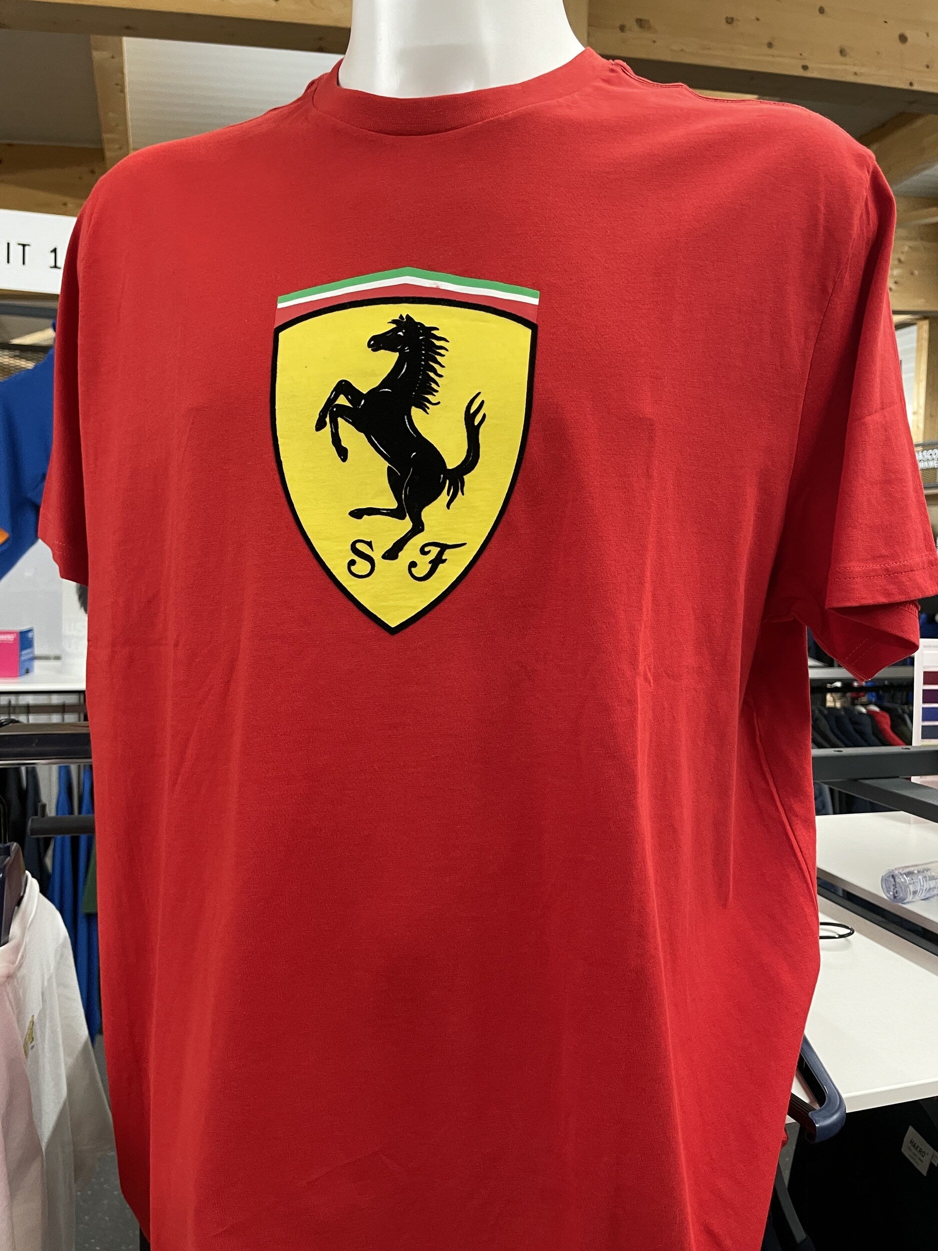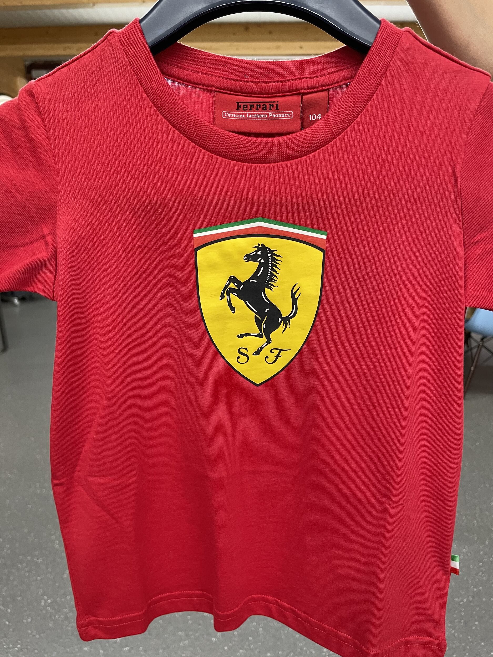 Original Premium T-Shirt rot mit gedrucktem Logo Ferrari gross auf Brust und Schriftzug Scuderia Ferrari im Nacken, sowie Label Etikette Ferrari. Die weiche Baumwolle Mischung bietet Dir einen tollen Tragekomfort. Auch in Kindergrösse verfügbar.